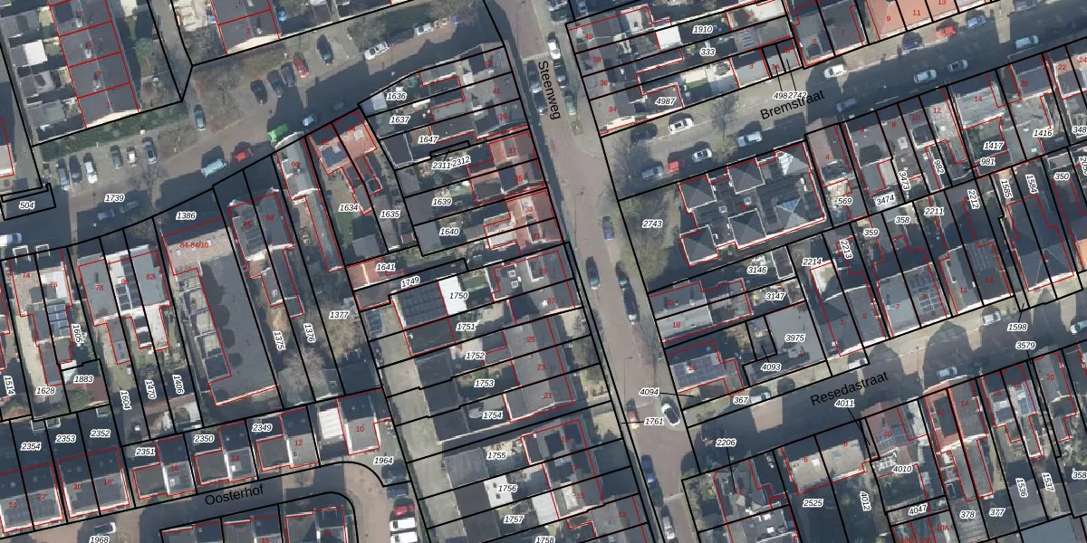 Gebruik de zoekbalk of klik op een perceel voor informatie over de adressen binnen dit perceel.