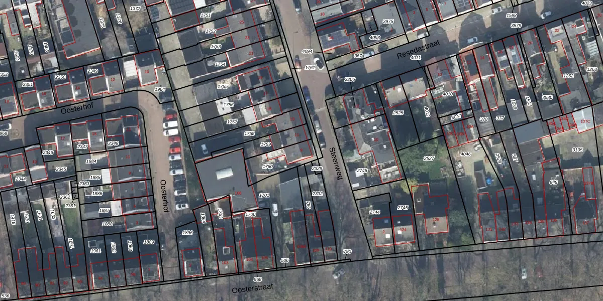 Gebruik de zoekbalk of klik op een perceel voor informatie over de adressen binnen dit perceel.