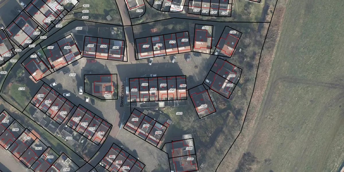 Stentorlaan 57 is gelegen op kadastraal perceel LNK00AA1587. Deze kadastrale aanduiding is uniek en wordt gebruikt door het Kadaster om eigendomsrechten en andere zakelijke rechten vast te leggen. Het perceel maakt onderdeel uit van de kadastrale gemeente Lonneker.