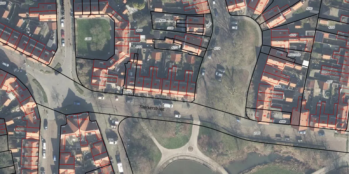 Het perceel waarop Sterkerstraat 33 staat heeft een oppervlakte van 3866 m². Dit is een zeer groot perceel. De perceeloppervlakte wordt geregistreerd door het Kadaster. Gedetailleerde informatie over de maten van dit perceel kunt u vinden in het rapport Kadastrale kaart met maatvoering van Sterkerstraat 33.