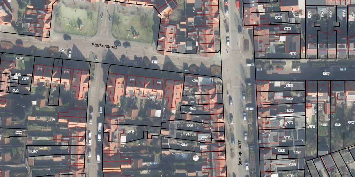 Het perceel waarop Sterkerstraat 56 staat heeft een oppervlakte van 1583 m². Dit is een zeer groot perceel. De perceeloppervlakte wordt geregistreerd door het Kadaster. Gedetailleerde informatie over de maten van dit perceel kunt u vinden in het rapport Kadastrale kaart met maatvoering van Sterkerstraat 56.