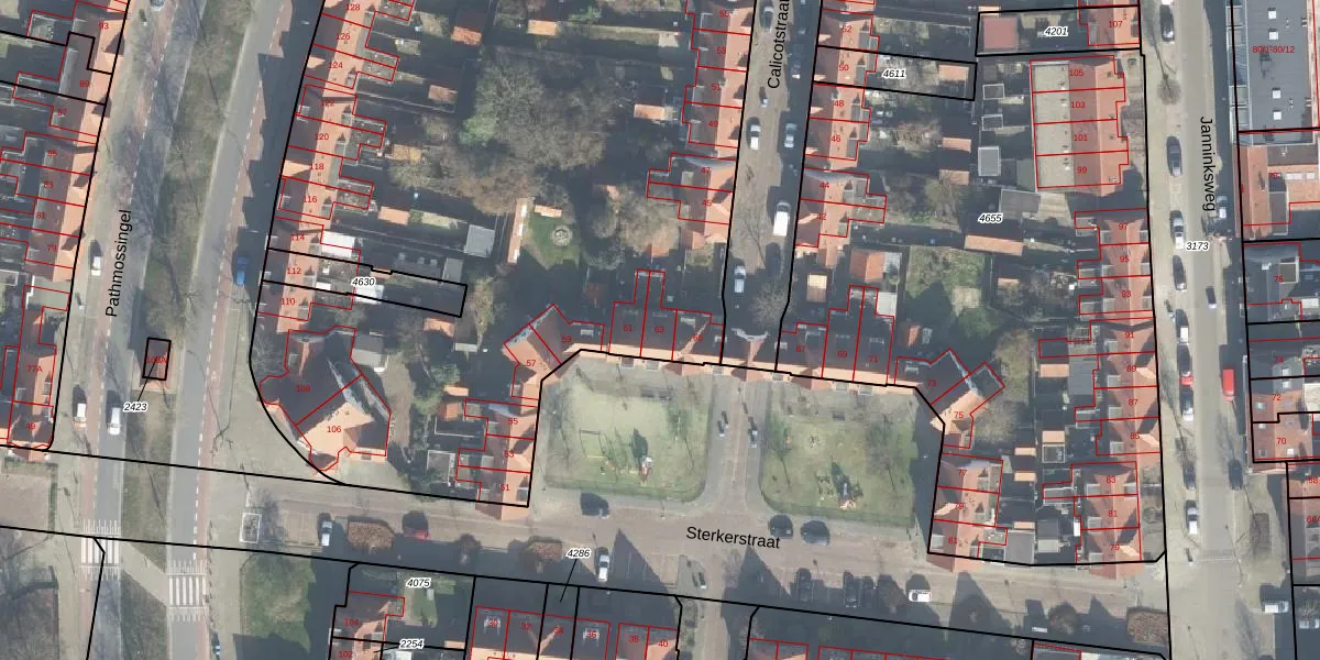 Sterkerstraat 63 is gelegen op kadastraal perceel ESD00G4094. Deze kadastrale aanduiding is uniek en wordt gebruikt door het Kadaster om eigendomsrechten en andere zakelijke rechten vast te leggen. Het perceel maakt onderdeel uit van de kadastrale gemeente Enschede.