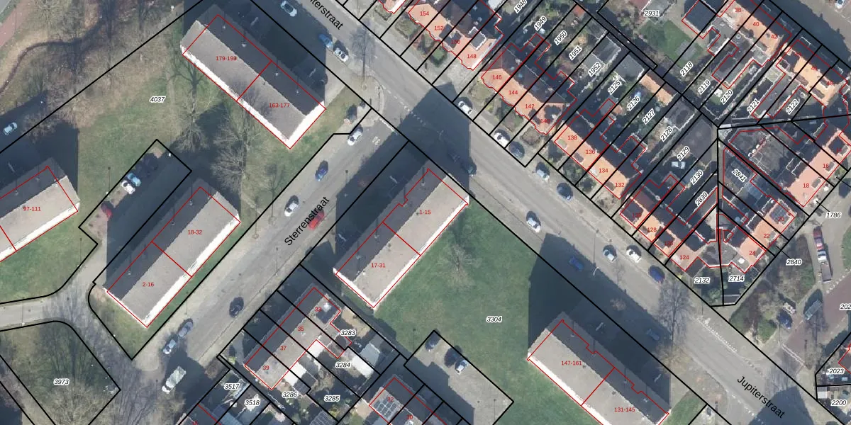 Het perceel waarop Sterrenstraat 15 staat heeft een oppervlakte van 3361 m². Dit is een zeer groot perceel. De perceeloppervlakte wordt geregistreerd door het Kadaster. Gedetailleerde informatie over de maten van dit perceel kunt u vinden in het rapport Kadastrale kaart met maatvoering van Sterrenstraat 15.