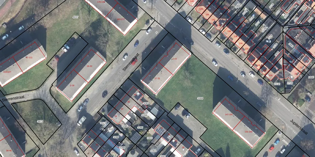 Het perceel waarop Sterrenstraat 21 staat heeft een oppervlakte van 3361 m². Dit is een zeer groot perceel. De perceeloppervlakte wordt geregistreerd door het Kadaster. Gedetailleerde informatie over de maten van dit perceel kunt u vinden in het rapport Kadastrale kaart met maatvoering van Sterrenstraat 21.