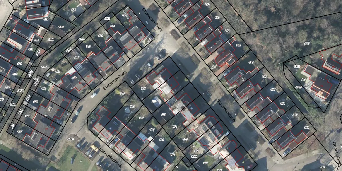 Stoevelaarhoek 15 is gelegen op kadastraal perceel LNK00U970. Deze kadastrale aanduiding is uniek en wordt gebruikt door het Kadaster om eigendomsrechten en andere zakelijke rechten vast te leggen. Het perceel maakt onderdeel uit van de kadastrale gemeente Lonneker.