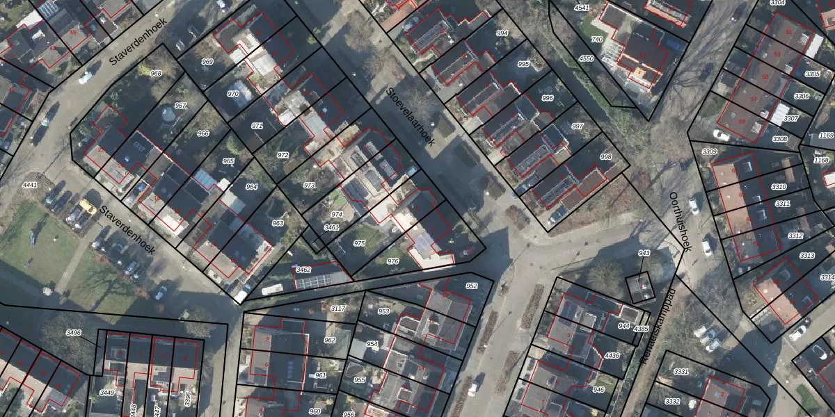 Stoevelaarhoek 5 is gelegen op kadastraal perceel LNK00U975. Deze kadastrale aanduiding is uniek en wordt gebruikt door het Kadaster om eigendomsrechten en andere zakelijke rechten vast te leggen. Het perceel maakt onderdeel uit van de kadastrale gemeente Lonneker.