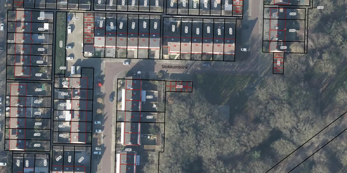 Het perceel waarop Stokkumbrink 61-D staat heeft een oppervlakte van 92 m². Dit is een klein perceel. De perceeloppervlakte wordt geregistreerd door het Kadaster. Gedetailleerde informatie over de maten van dit perceel kunt u vinden in het rapport Kadastrale kaart met maatvoering van Stokkumbrink 61-D.