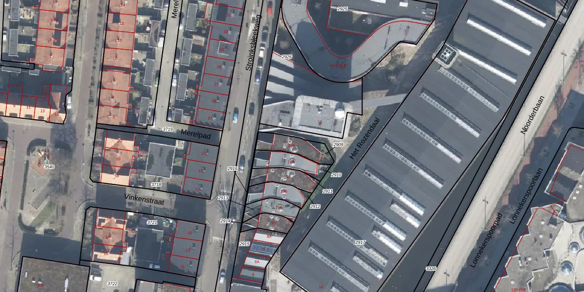 Gebruik de zoekbalk of klik op een perceel voor informatie over de adressen binnen dit perceel.