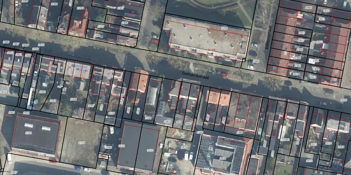 Het perceel waarop Sumatrastraat 41 staat heeft een oppervlakte van 295 m². Dit is een middelgroot perceel. De perceeloppervlakte wordt geregistreerd door het Kadaster. Gedetailleerde informatie over de maten van dit perceel kunt u vinden in het rapport Kadastrale kaart met maatvoering van Sumatrastraat 41.