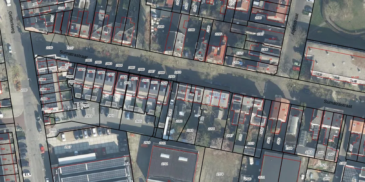 Sumatrastraat 71 is gelegen op kadastraal perceel ESD00F2262. Deze kadastrale aanduiding is uniek en wordt gebruikt door het Kadaster om eigendomsrechten en andere zakelijke rechten vast te leggen. Het perceel maakt onderdeel uit van de kadastrale gemeente Enschede.
