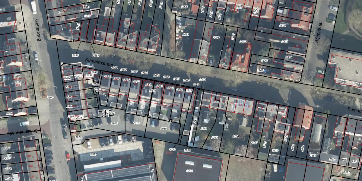 Sumatrastraat 77 is gelegen op kadastraal perceel ESD00F2913. Deze kadastrale aanduiding is uniek en wordt gebruikt door het Kadaster om eigendomsrechten en andere zakelijke rechten vast te leggen. Het perceel maakt onderdeel uit van de kadastrale gemeente Enschede.