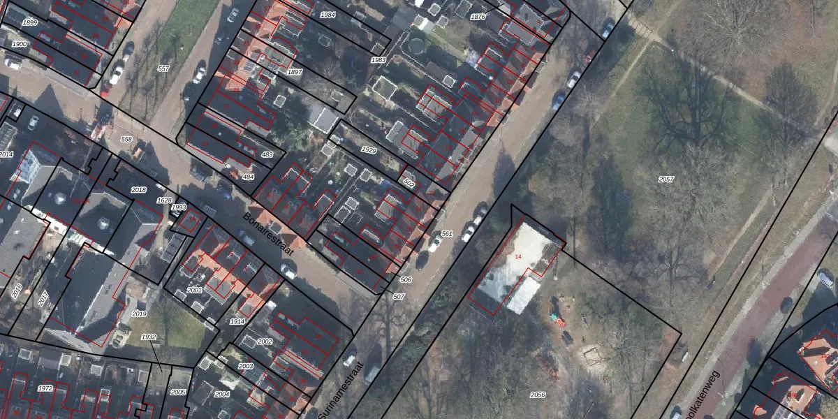 Het perceel waarop Surinamestraat 24 staat heeft een oppervlakte van 4086 m². Dit is een zeer groot perceel. De perceeloppervlakte wordt geregistreerd door het Kadaster. Gedetailleerde informatie over de maten van dit perceel kunt u vinden in het rapport Kadastrale kaart met maatvoering van Surinamestraat 24.