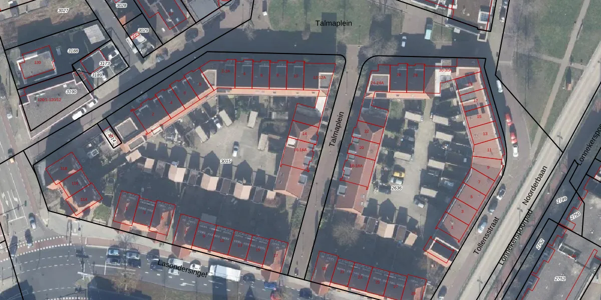 Het perceel waarop Talmaplein 16 staat heeft een oppervlakte van 4908 m². Dit is een zeer groot perceel. De perceeloppervlakte wordt geregistreerd door het Kadaster. Gedetailleerde informatie over de maten van dit perceel kunt u vinden in het rapport Kadastrale kaart met maatvoering van Talmaplein 16.