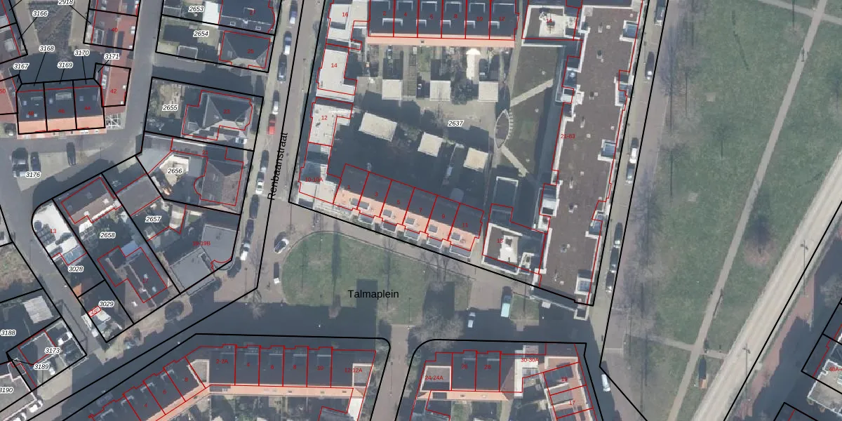 Het perceel waarop Talmaplein 7 staat heeft een oppervlakte van 4924 m². Dit is een zeer groot perceel. De perceeloppervlakte wordt geregistreerd door het Kadaster. Gedetailleerde informatie over de maten van dit perceel kunt u vinden in het rapport Kadastrale kaart met maatvoering van Talmaplein 7.