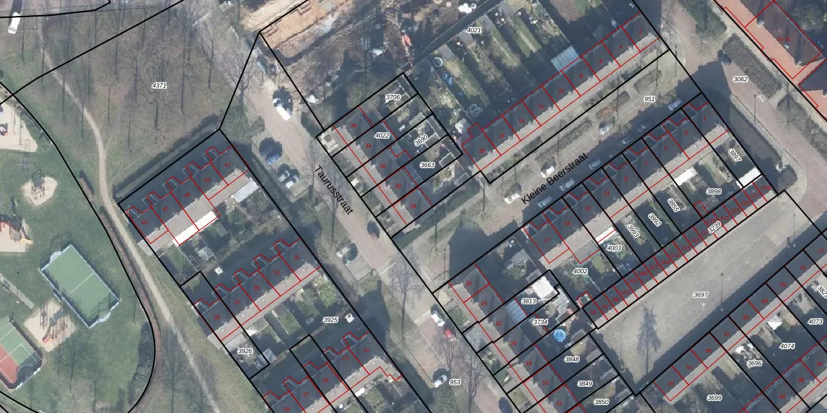 Het perceel waarop Taurusstraat 28 staat heeft een oppervlakte van 4156 m². Dit is een zeer groot perceel. De perceeloppervlakte wordt geregistreerd door het Kadaster. Gedetailleerde informatie over de maten van dit perceel kunt u vinden in het rapport Kadastrale kaart met maatvoering van Taurusstraat 28.