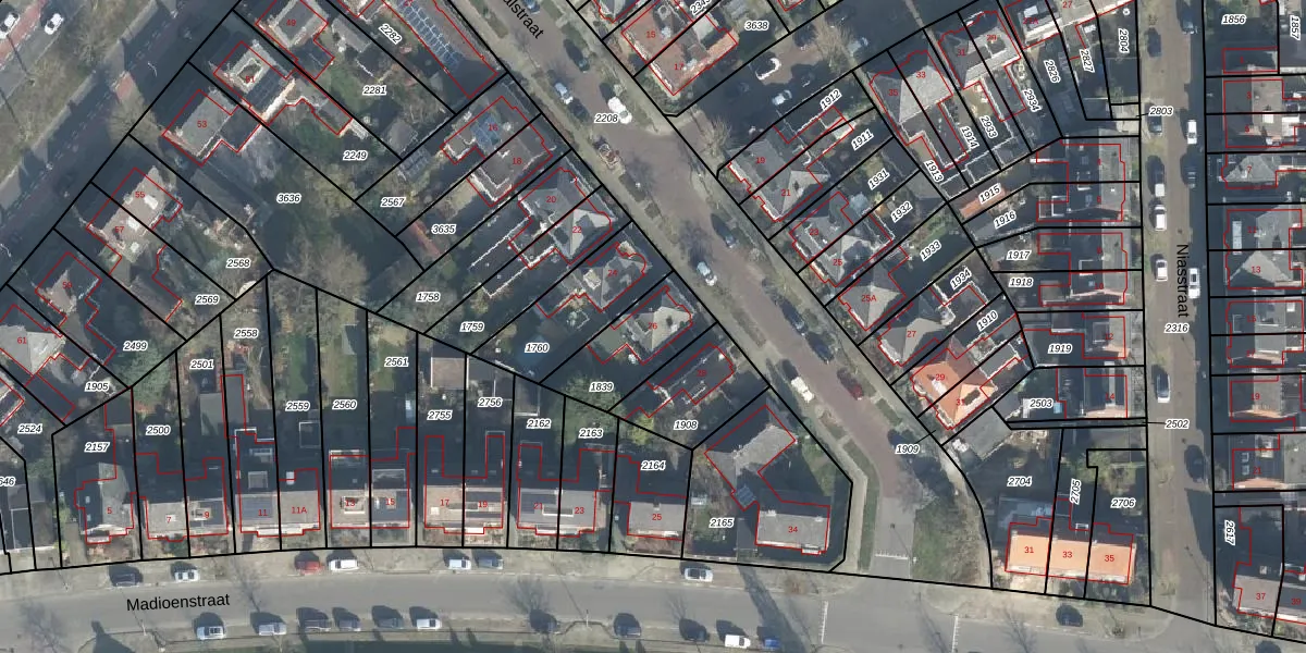 Gebruik de zoekbalk of klik op een perceel voor informatie over de adressen binnen dit perceel.