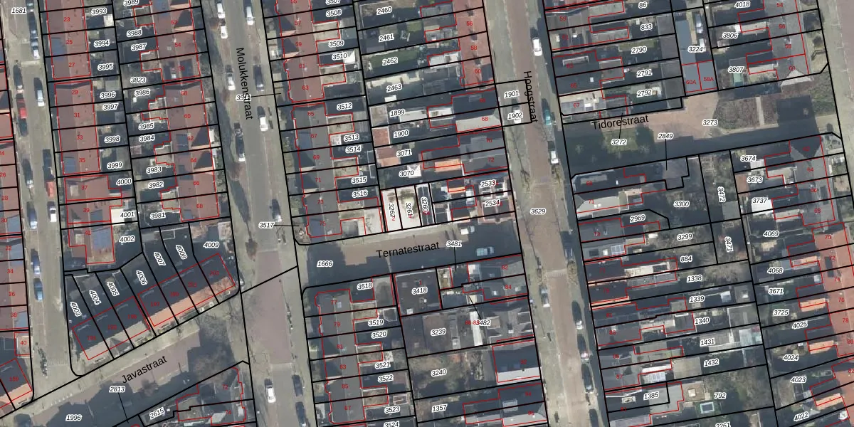 Het perceel waarop Ternatestraat 6-A staat heeft een oppervlakte van 33 m². Dit is een klein perceel. De perceeloppervlakte wordt geregistreerd door het Kadaster. Gedetailleerde informatie over de maten van dit perceel kunt u vinden in het rapport Kadastrale kaart met maatvoering van Ternatestraat 6-A.