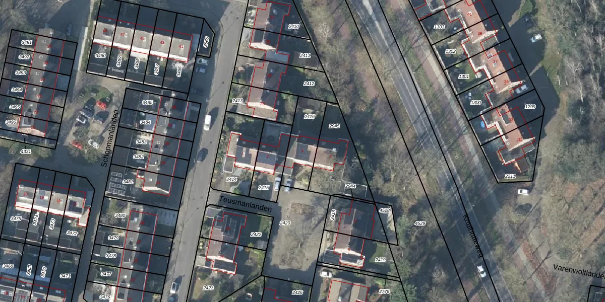 Teusmanlanden 3 is gelegen op kadastraal perceel LNK00G2416. Deze kadastrale aanduiding is uniek en wordt gebruikt door het Kadaster om eigendomsrechten en andere zakelijke rechten vast te leggen. Het perceel maakt onderdeel uit van de kadastrale gemeente Lonneker.