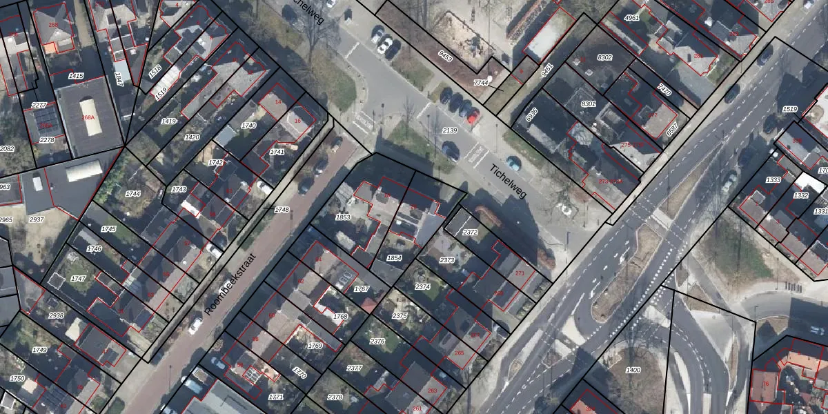 Gebruik de zoekbalk of klik op een perceel voor informatie over de adressen binnen dit perceel.