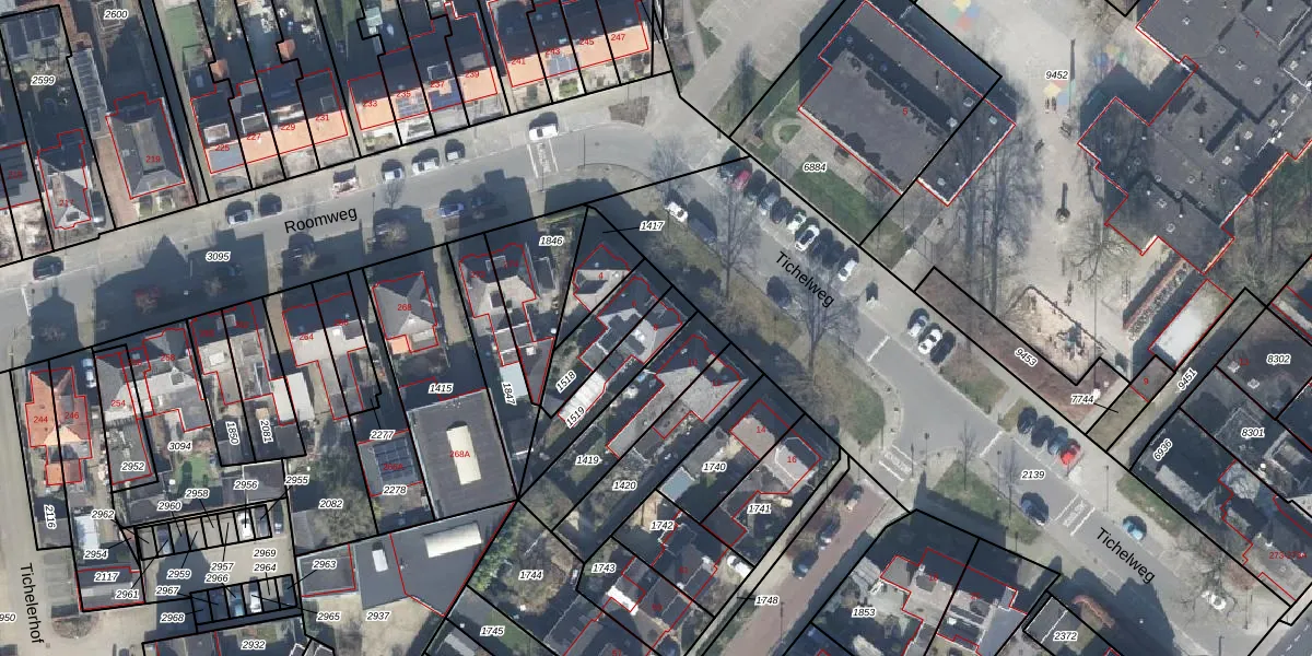 Gebruik de zoekbalk of klik op een perceel voor informatie over de adressen binnen dit perceel.