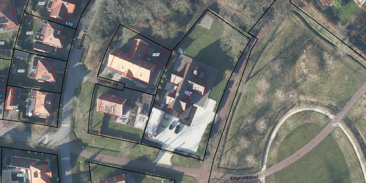 Het perceel waarop Tiemeister Es 7 staat heeft een oppervlakte van 2585 m². Dit is een zeer groot perceel. De perceeloppervlakte wordt geregistreerd door het Kadaster. Gedetailleerde informatie over de maten van dit perceel kunt u vinden in het rapport Kadastrale kaart met maatvoering van Tiemeister Es 7.