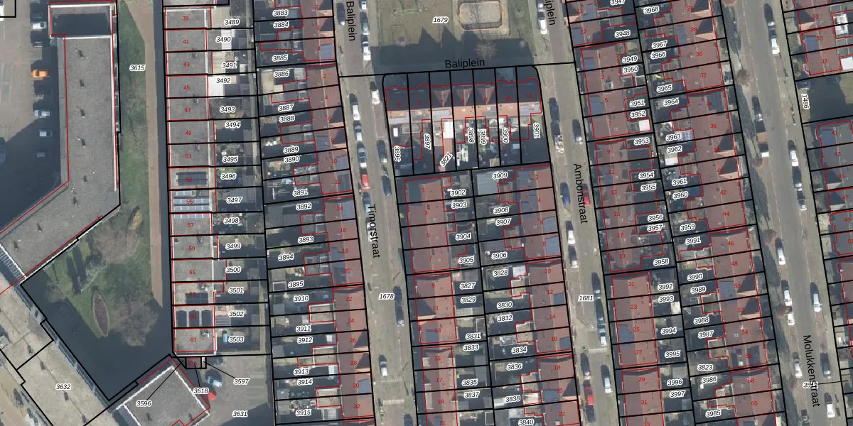 Het perceel waarop Timorstraat 3 staat heeft een oppervlakte van 97 m². Dit is een klein perceel. De perceeloppervlakte wordt geregistreerd door het Kadaster. Gedetailleerde informatie over de maten van dit perceel kunt u vinden in het rapport Kadastrale kaart met maatvoering van Timorstraat 3.