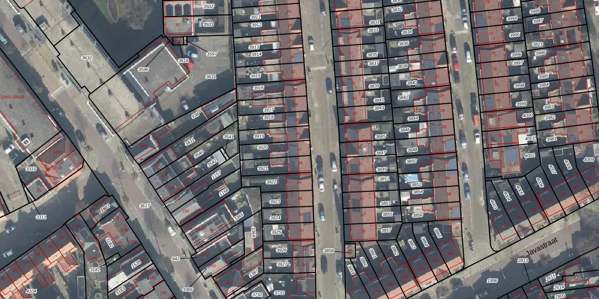 Gebruik de zoekbalk of klik op een perceel voor informatie over de adressen binnen dit perceel.