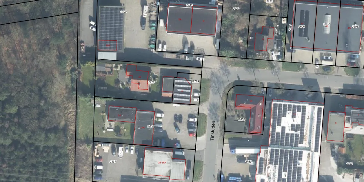 Tinsteden 12 is gelegen op kadastraal perceel LNK00K2715. Deze kadastrale aanduiding is uniek en wordt gebruikt door het Kadaster om eigendomsrechten en andere zakelijke rechten vast te leggen. Het perceel maakt onderdeel uit van de kadastrale gemeente Lonneker.