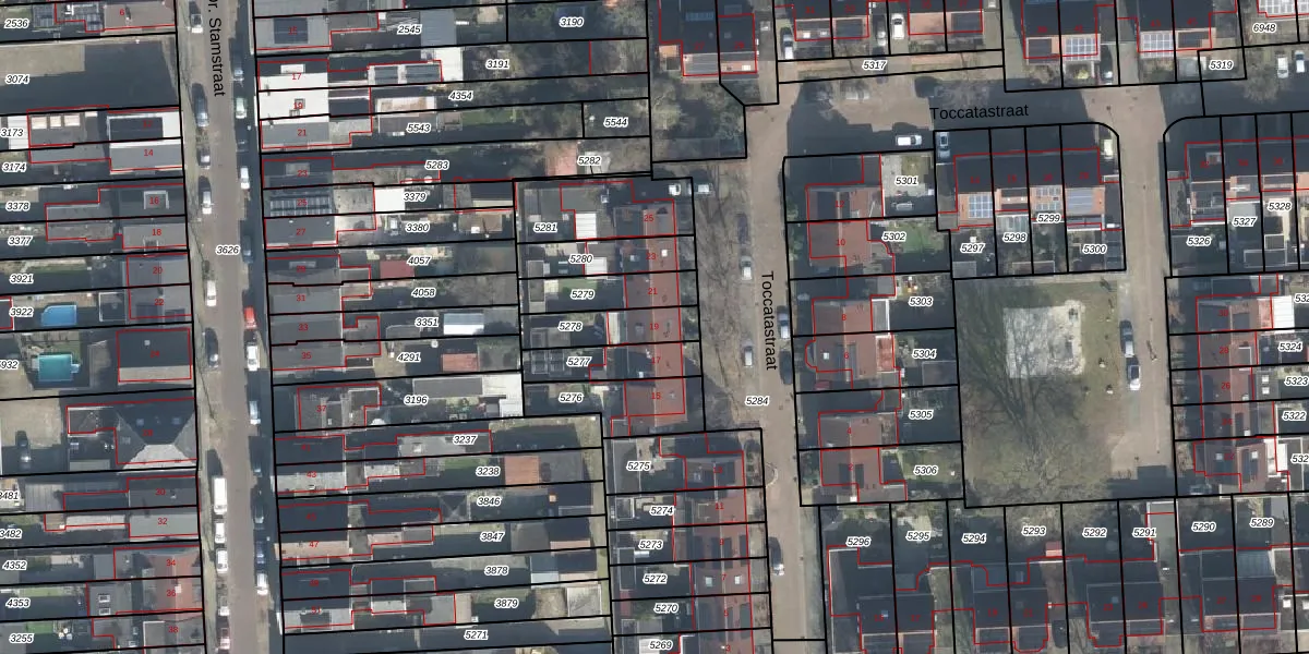 Toccatastraat 19 is gelegen op kadastraal perceel LNK00F5278. Deze kadastrale aanduiding is uniek en wordt gebruikt door het Kadaster om eigendomsrechten en andere zakelijke rechten vast te leggen. Het perceel maakt onderdeel uit van de kadastrale gemeente Lonneker.