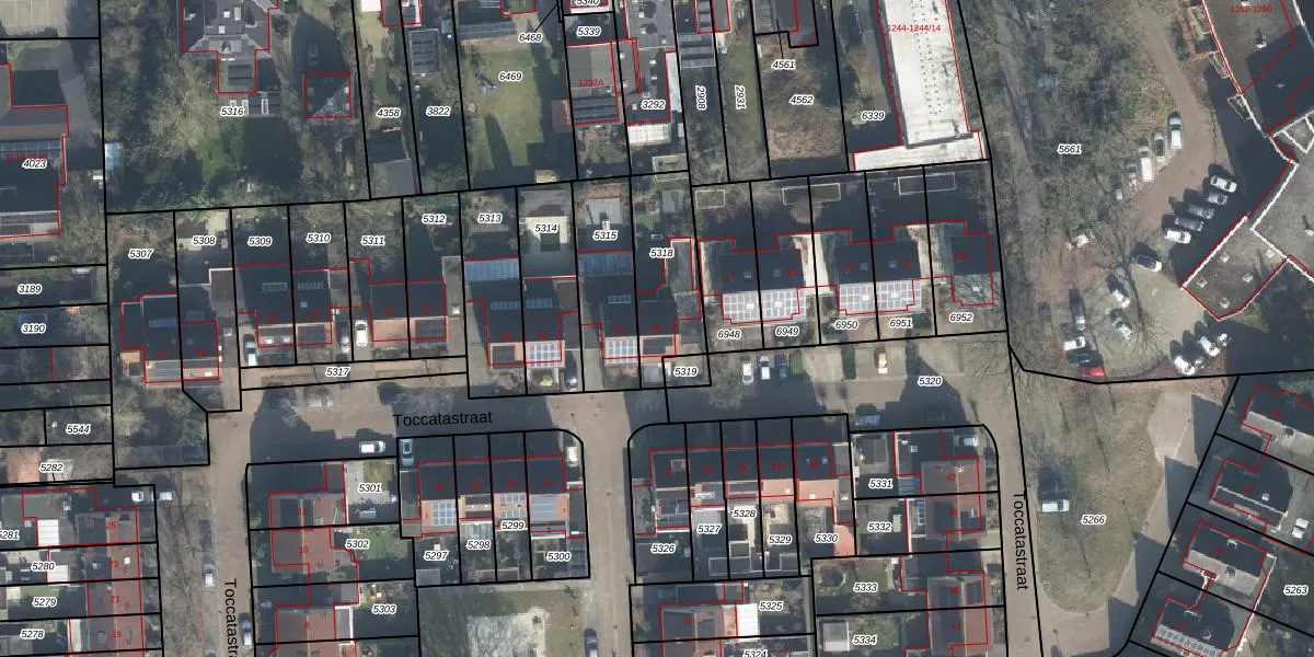 Toccatastraat 45 is gelegen op kadastraal perceel LNK00F5318. Deze kadastrale aanduiding is uniek en wordt gebruikt door het Kadaster om eigendomsrechten en andere zakelijke rechten vast te leggen. Het perceel maakt onderdeel uit van de kadastrale gemeente Lonneker.