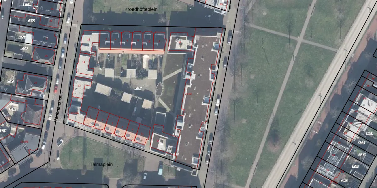 Het perceel waarop het adres ligt is ESD00-L-2637. De afkorting 'ESD00' staat voor kadastrale gemeente Enschede. De oppervlakte van het perceel is 4924 m². Dat is groter dan gemiddeld in Enschede, waar de gemiddelde perceeloppervlakte op 548,27 m² ligt. De grootste perceeloppervlakte in de kadastrale gemeente is 10,7 ha. De kleinste oppervlakte bedraagt 0 m². Er zijn 53 adressen aanwezig op het perceel. De laatste wijziging in het de Basisregistratie Kadaster (BRK) was op 24-02-2010.