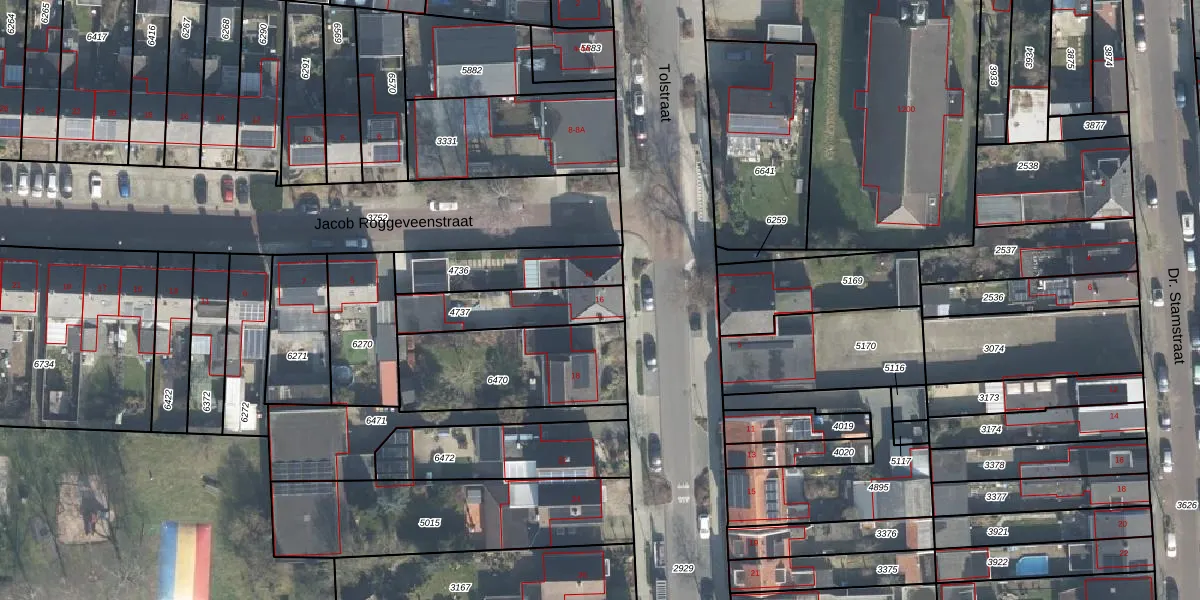 Het perceel waarop Tolstraat 16 staat heeft een oppervlakte van 244 m². Dit is een middelgroot perceel. De perceeloppervlakte wordt geregistreerd door het Kadaster. Gedetailleerde informatie over de maten van dit perceel kunt u vinden in het rapport Kadastrale kaart met maatvoering van Tolstraat 16.
