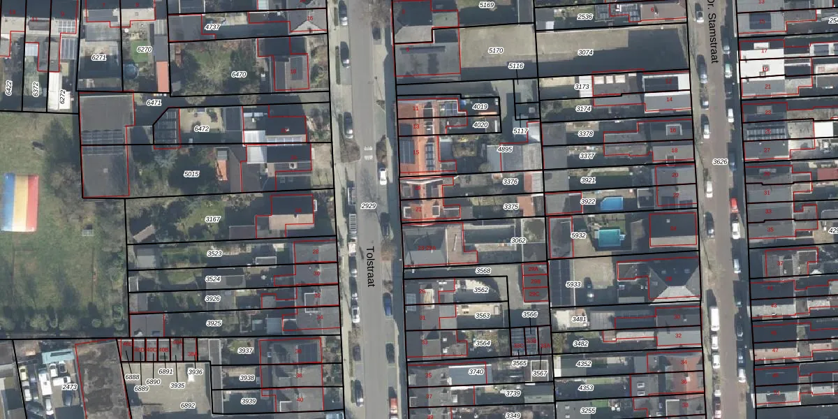 Tolstraat 21 is gelegen op kadastraal perceel LNK00F3375. Deze kadastrale aanduiding is uniek en wordt gebruikt door het Kadaster om eigendomsrechten en andere zakelijke rechten vast te leggen. Het perceel maakt onderdeel uit van de kadastrale gemeente Lonneker.