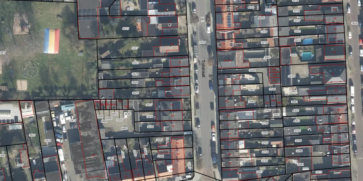 Het perceel waarop Tolstraat 34 staat heeft een oppervlakte van 321 m². Dit is een groot perceel. De perceeloppervlakte wordt geregistreerd door het Kadaster. Gedetailleerde informatie over de maten van dit perceel kunt u vinden in het rapport Kadastrale kaart met maatvoering van Tolstraat 34.