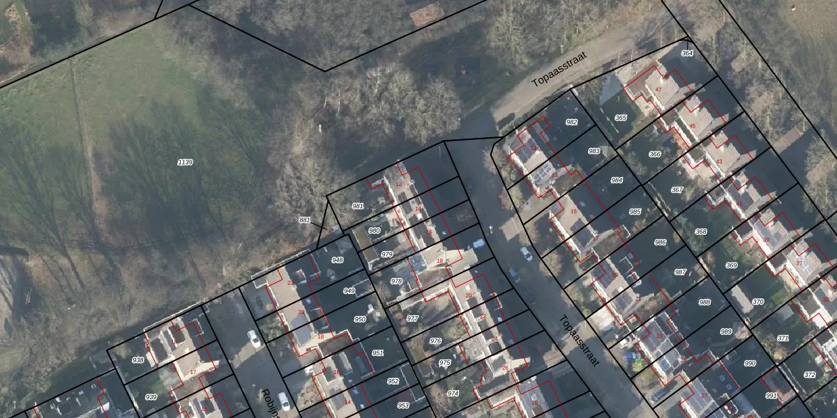 Topaasstraat 14 is gelegen op kadastraal perceel LNK00V980. Deze kadastrale aanduiding is uniek en wordt gebruikt door het Kadaster om eigendomsrechten en andere zakelijke rechten vast te leggen. Het perceel maakt onderdeel uit van de kadastrale gemeente Lonneker.
