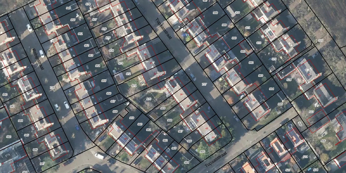 Topaasstraat 34 is gelegen op kadastraal perceel LNK00V970. Deze kadastrale aanduiding is uniek en wordt gebruikt door het Kadaster om eigendomsrechten en andere zakelijke rechten vast te leggen. Het perceel maakt onderdeel uit van de kadastrale gemeente Lonneker.