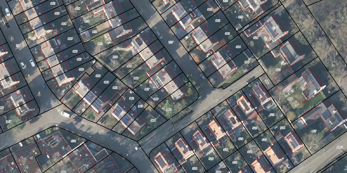 Topaasstraat 42 is gelegen op kadastraal perceel LNK00V966. Deze kadastrale aanduiding is uniek en wordt gebruikt door het Kadaster om eigendomsrechten en andere zakelijke rechten vast te leggen. Het perceel maakt onderdeel uit van de kadastrale gemeente Lonneker.