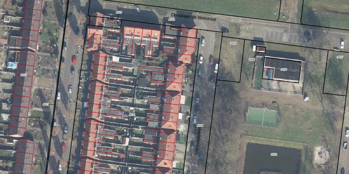 Het perceel waarop Transvaalplein 31 staat heeft een oppervlakte van 7515 m². Dit is een zeer groot perceel. De perceeloppervlakte wordt geregistreerd door het Kadaster. Gedetailleerde informatie over de maten van dit perceel kunt u vinden in het rapport Kadastrale kaart met maatvoering van Transvaalplein 31.