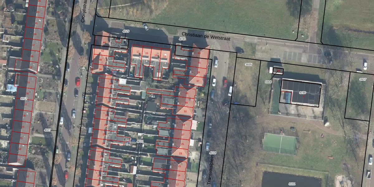 Het perceel waarop Transvaalplein 35 staat heeft een oppervlakte van 7515 m². Dit is een zeer groot perceel. De perceeloppervlakte wordt geregistreerd door het Kadaster. Gedetailleerde informatie over de maten van dit perceel kunt u vinden in het rapport Kadastrale kaart met maatvoering van Transvaalplein 35.