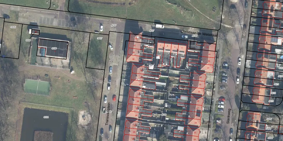Het perceel waarop Transvaalplein 36 staat heeft een oppervlakte van 7503 m². Dit is een zeer groot perceel. De perceeloppervlakte wordt geregistreerd door het Kadaster. Gedetailleerde informatie over de maten van dit perceel kunt u vinden in het rapport Kadastrale kaart met maatvoering van Transvaalplein 36.
