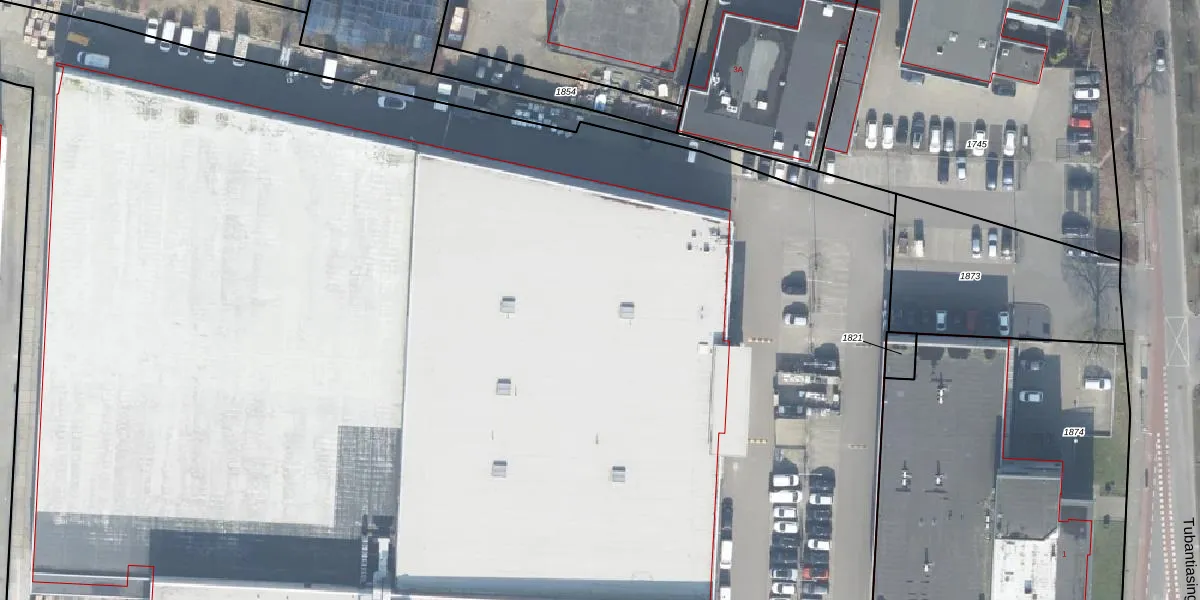 Het perceel waarop Tubantiasingel 1-A staat heeft een oppervlakte van 1,7 ha. Dit is een zeer groot perceel. De perceeloppervlakte wordt geregistreerd door het Kadaster. Gedetailleerde informatie over de maten van dit perceel kunt u vinden in het rapport Kadastrale kaart met maatvoering van Tubantiasingel 1-A.