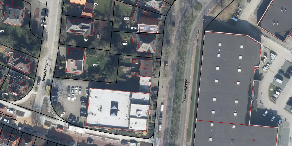 Het perceel waarop Tubantiasingel 69 staat heeft een oppervlakte van 2920 m². Dit is een zeer groot perceel. De perceeloppervlakte wordt geregistreerd door het Kadaster. Gedetailleerde informatie over de maten van dit perceel kunt u vinden in het rapport Kadastrale kaart met maatvoering van Tubantiasingel 69.