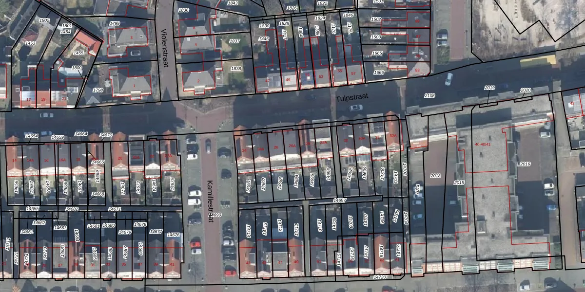 Gebruik de zoekbalk of klik op een perceel voor informatie over de adressen binnen dit perceel.