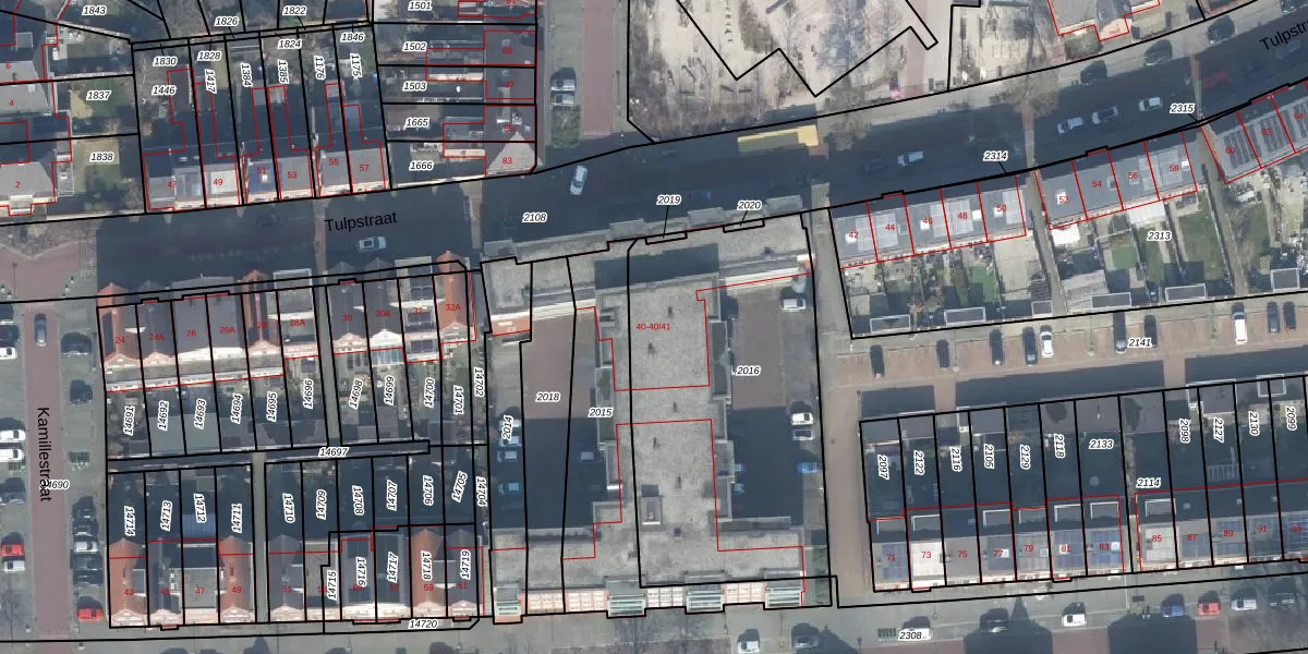 Het perceel waarop Tulpstraat 40-24 staat heeft een oppervlakte van 1545 m². Dit is een zeer groot perceel. De perceeloppervlakte wordt geregistreerd door het Kadaster. Gedetailleerde informatie over de maten van dit perceel kunt u vinden in het rapport Kadastrale kaart met maatvoering van Tulpstraat 40-24.