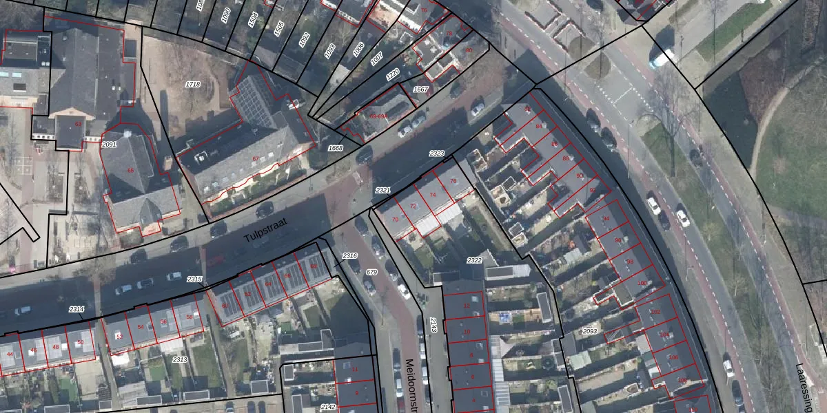 Het perceel waarop Tulpstraat 72 staat heeft een oppervlakte van 1744 m². Dit is een zeer groot perceel. De perceeloppervlakte wordt geregistreerd door het Kadaster. Gedetailleerde informatie over de maten van dit perceel kunt u vinden in het rapport Kadastrale kaart met maatvoering van Tulpstraat 72.