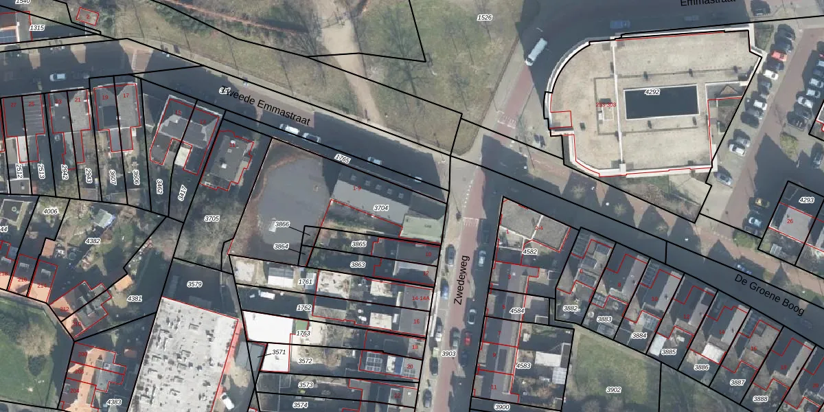 Het perceel waarop Tweede Emmastraat 1-A staat heeft een oppervlakte van 889 m². Dit is een groot perceel. De perceeloppervlakte wordt geregistreerd door het Kadaster. Gedetailleerde informatie over de maten van dit perceel kunt u vinden in het rapport Kadastrale kaart met maatvoering van Tweede Emmastraat 1-A.