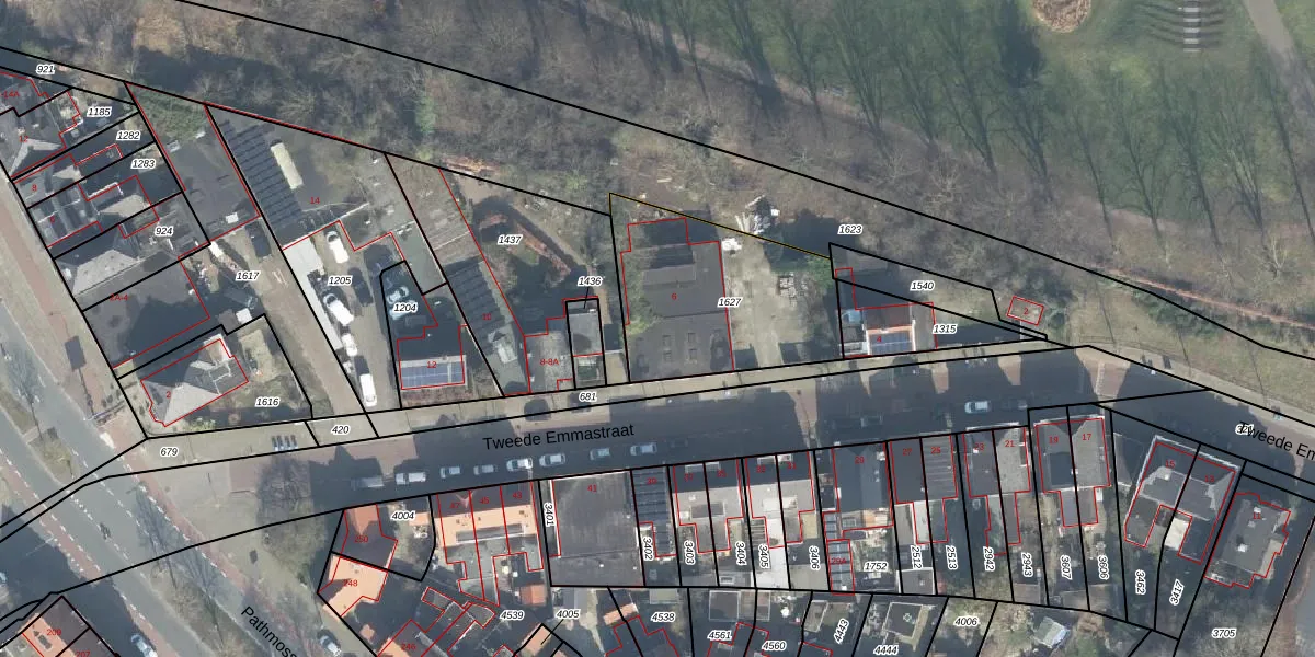Het perceel waarop Tweede Emmastraat 6-B staat heeft een oppervlakte van 742 m². Dit is een groot perceel. De perceeloppervlakte wordt geregistreerd door het Kadaster. Gedetailleerde informatie over de maten van dit perceel kunt u vinden in het rapport Kadastrale kaart met maatvoering van Tweede Emmastraat 6-B.