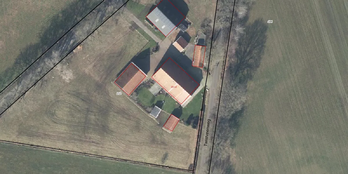 Twistveenweg 10 is gelegen op kadastraal perceel LNK00AD212. Deze kadastrale aanduiding is uniek en wordt gebruikt door het Kadaster om eigendomsrechten en andere zakelijke rechten vast te leggen. Het perceel maakt onderdeel uit van de kadastrale gemeente Lonneker.