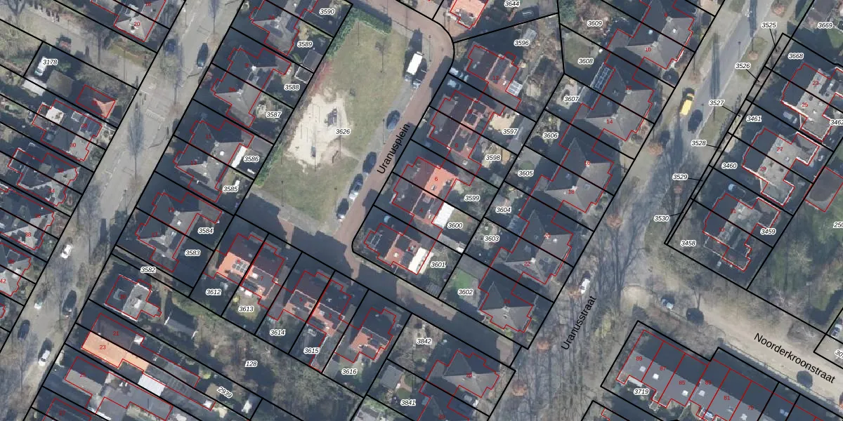 Uranusplein 4 is gelegen op kadastraal perceel LNK00S3600. Deze kadastrale aanduiding is uniek en wordt gebruikt door het Kadaster om eigendomsrechten en andere zakelijke rechten vast te leggen. Het perceel maakt onderdeel uit van de kadastrale gemeente Lonneker.