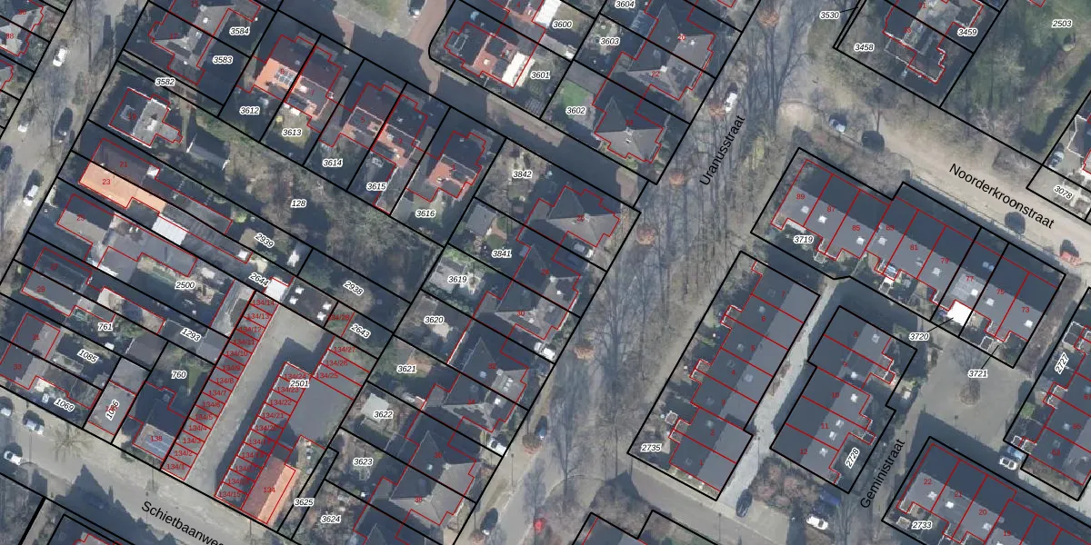 Het perceel waarop Uranusstraat 28 staat heeft een oppervlakte van 275 m². Dit is een middelgroot perceel. De perceeloppervlakte wordt geregistreerd door het Kadaster. Gedetailleerde informatie over de maten van dit perceel kunt u vinden in het rapport Kadastrale kaart met maatvoering van Uranusstraat 28.